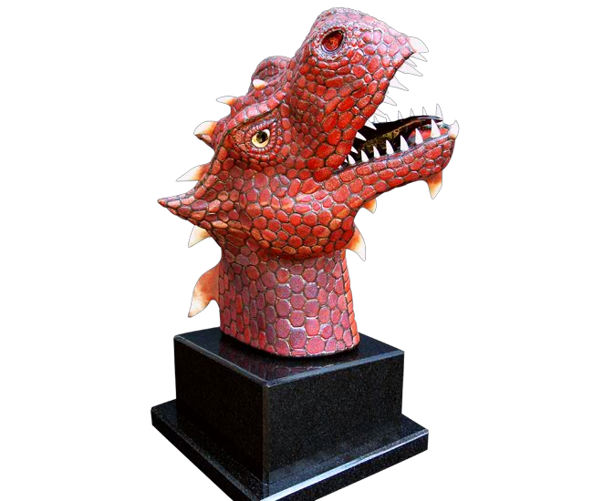 Each individual piece of glass in JAC has been fused, grinder shaped, coated with frit and enamels, and then kiln fired prior to being joined to the sculpture using the traditional copper foil technique pioneered by Tiffany.