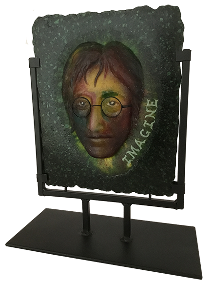 8.5" long, 10" wide and 2" tall Cast glass refief of JOHN LENNON.